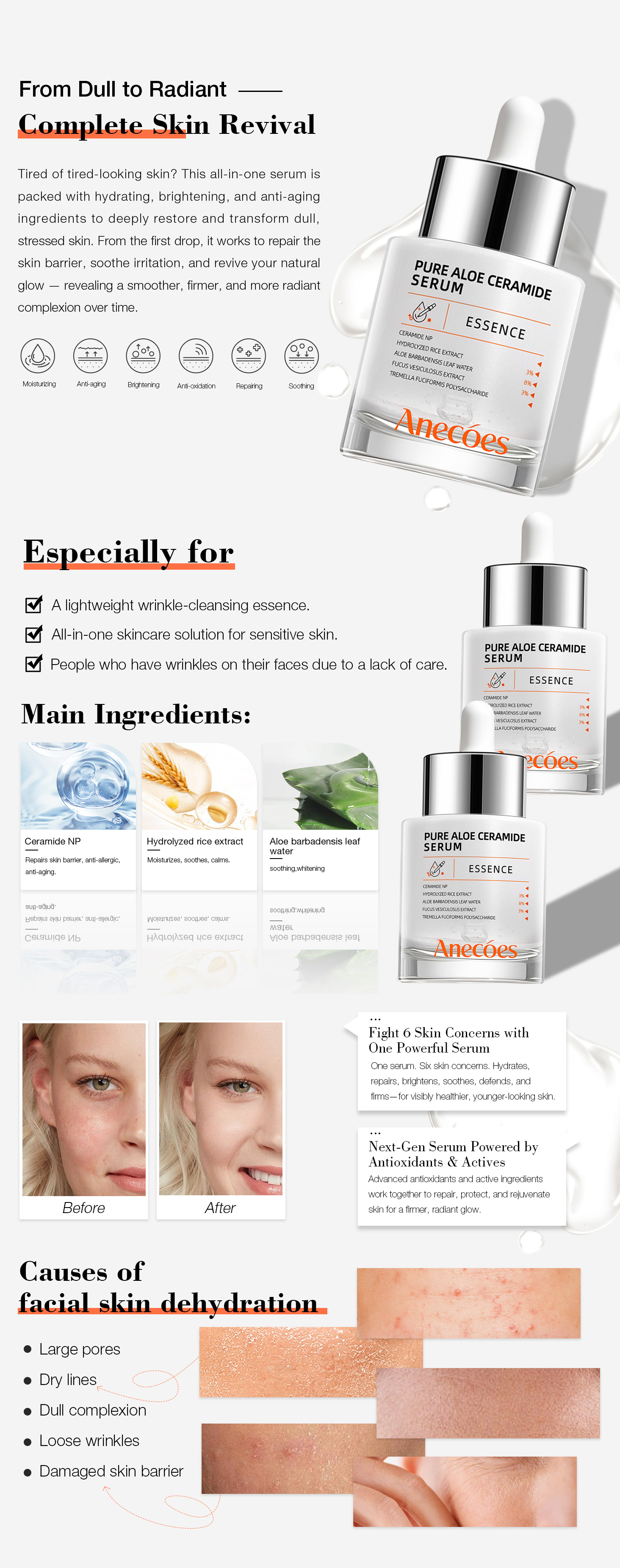 ANECOES Pure Aloe Ceramide Serum is your daily skin defense and hydration boost—gentle enough for sensitive skin, powerful enough to transform. Rediscover your skin’s natural balance with every drop.